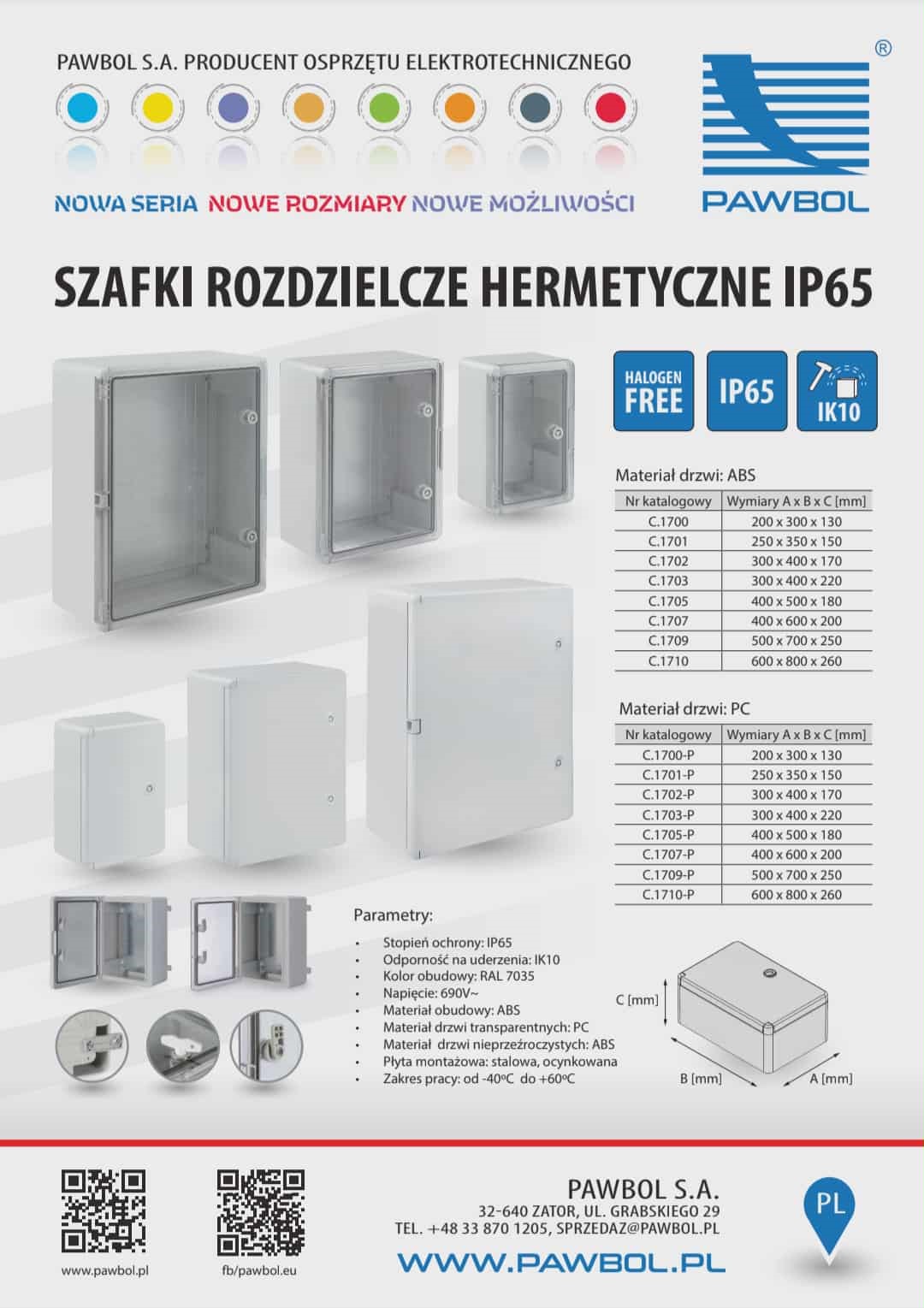 Obudowa szafka rozdzielcza hermetyczna IP65, 500mm C.1709 Pawbol